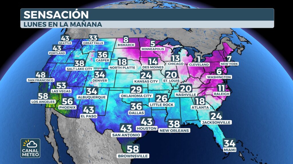Un nor’easter es una tormenta que se desarrolla a lo largo de la Costa Este. Se caracteriza por vientos fuertes del noreste. Estos vientos pueden superar las 60-70 mph en casos intensos. El Vórtice Polar enviará aire frío desde Canadá esta semana. Este aire se extenderá sobre los Grandes Lagos. Eventualmente llegará al sureste del país.