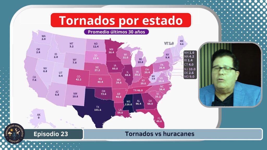 Later on, he was joined by Kamila Daza, The data and context provided help to dimension the phenomenon. Texas is the state that records the most tornadoes each year - more than 120-, although Oklahoma y Kansas have a higher density per square kilometer. Their participation served to put numbers and territory to what we often see only in images: the real magnitude of tornadoes in the daily lives of millions of people.