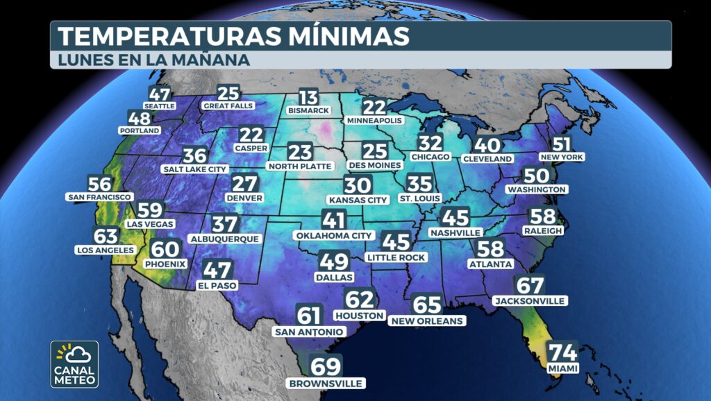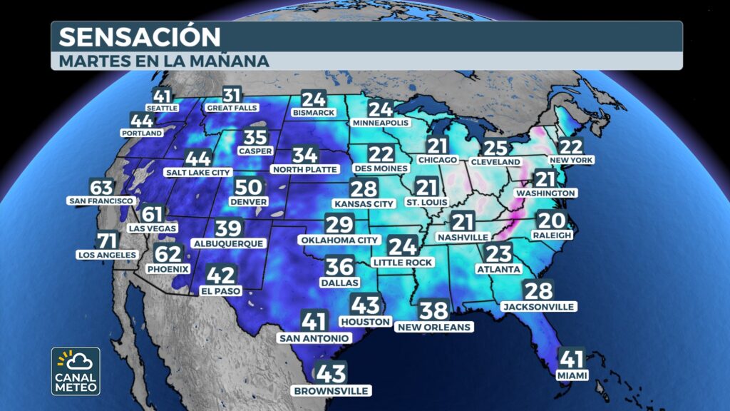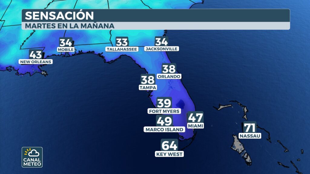 Even Tallahassee (Florida) could record its first frost before New York, with near-freezing values on Tuesday.