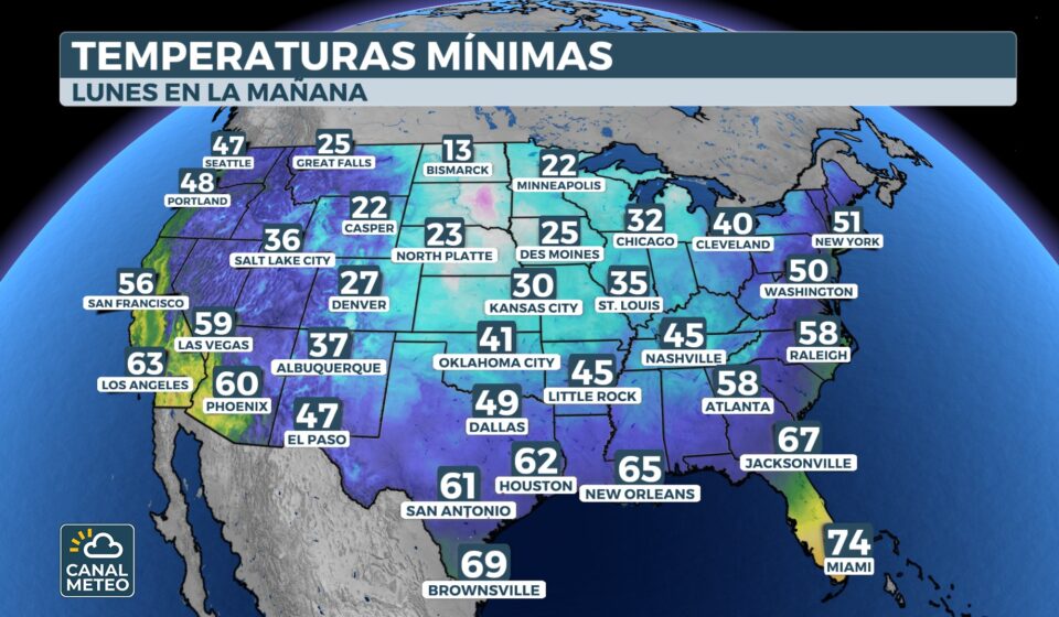 Even Tallahassee (Florida) could record its first frost before New York, with near-freezing values on Tuesday.