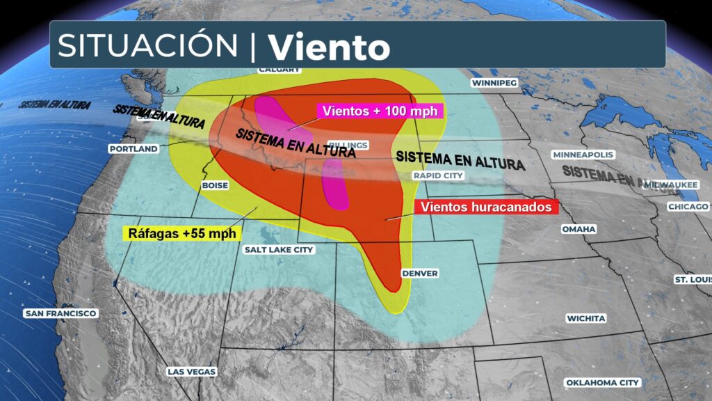 ]]>El sistema comienza a abandonar el noroeste del país, donde las lluvias intensas han agravado las inundaciones históricas registradas en Washington la semana pasada. Avanza hacia las Grandes Llanuras del Norte y las Montañas Rocosas. En estas regiones se están registrando rachas de viento generalizadas de 50 a 70 mph (80–110 km/h), con valores aislados que podrían acercarse a 80–90 mph (130–145 km/h).