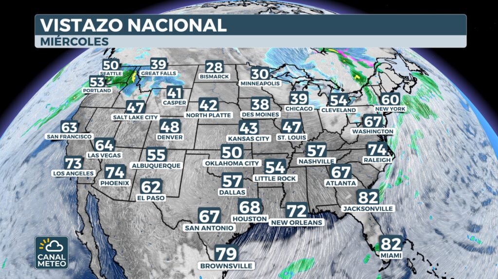 - Miércoles 27: lluvia en el noreste y posibilidad de nieve en Minnesota